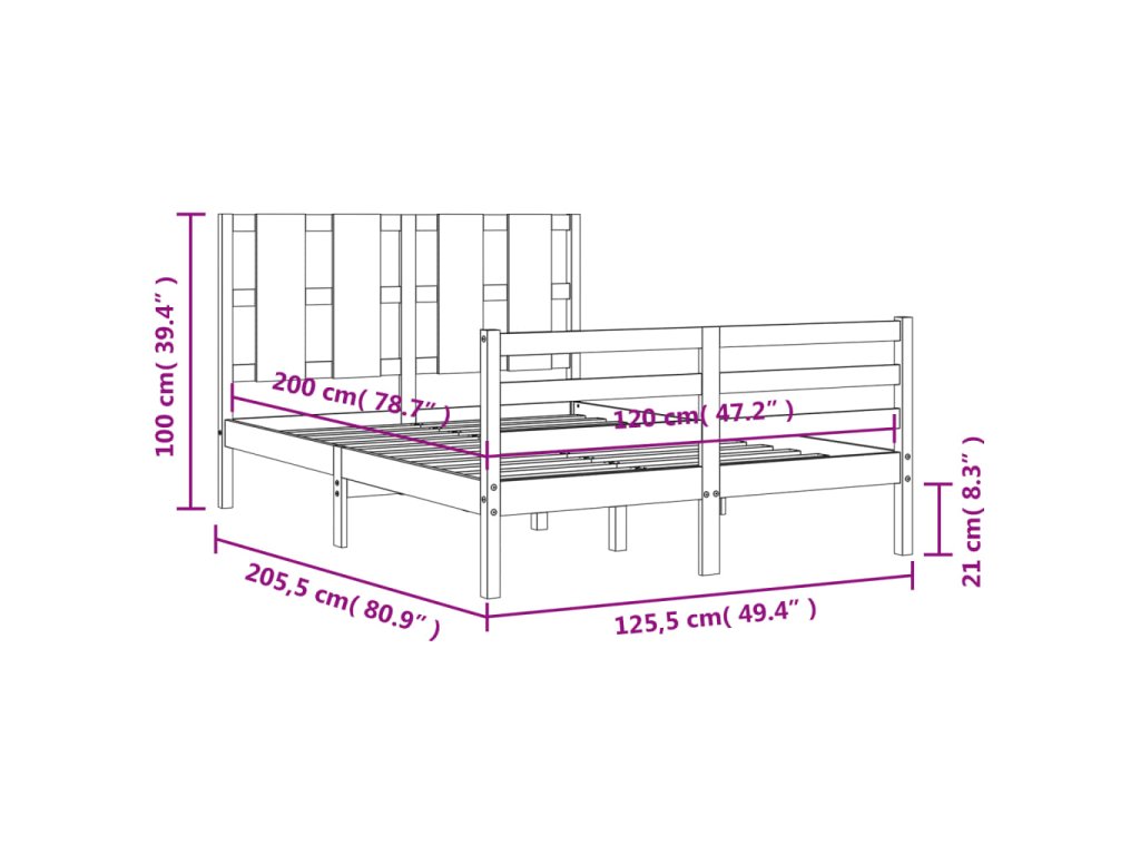 - Celkové rozměry postele: 205,5 x 125,5 x 100 cm (D x Š x V)