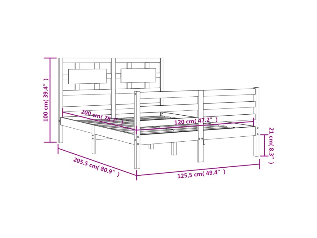 Rám postele s čelem 120 x 200 cm masivní dřevo 3194436