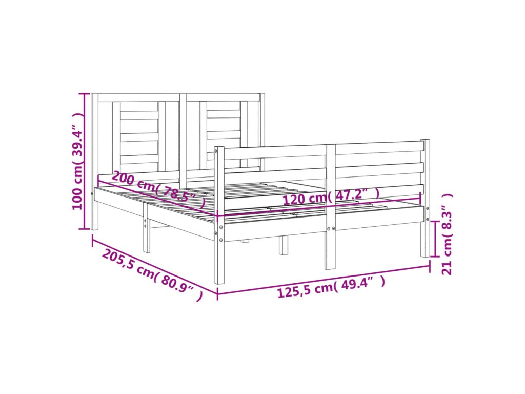 - Celkové rozměry postele: 205,5 x 125,5 x 100 cm (D x Š x V)
