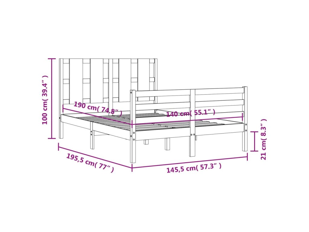 Rám postele s čelem 140 x 190 cm masivní dřevo 3194096