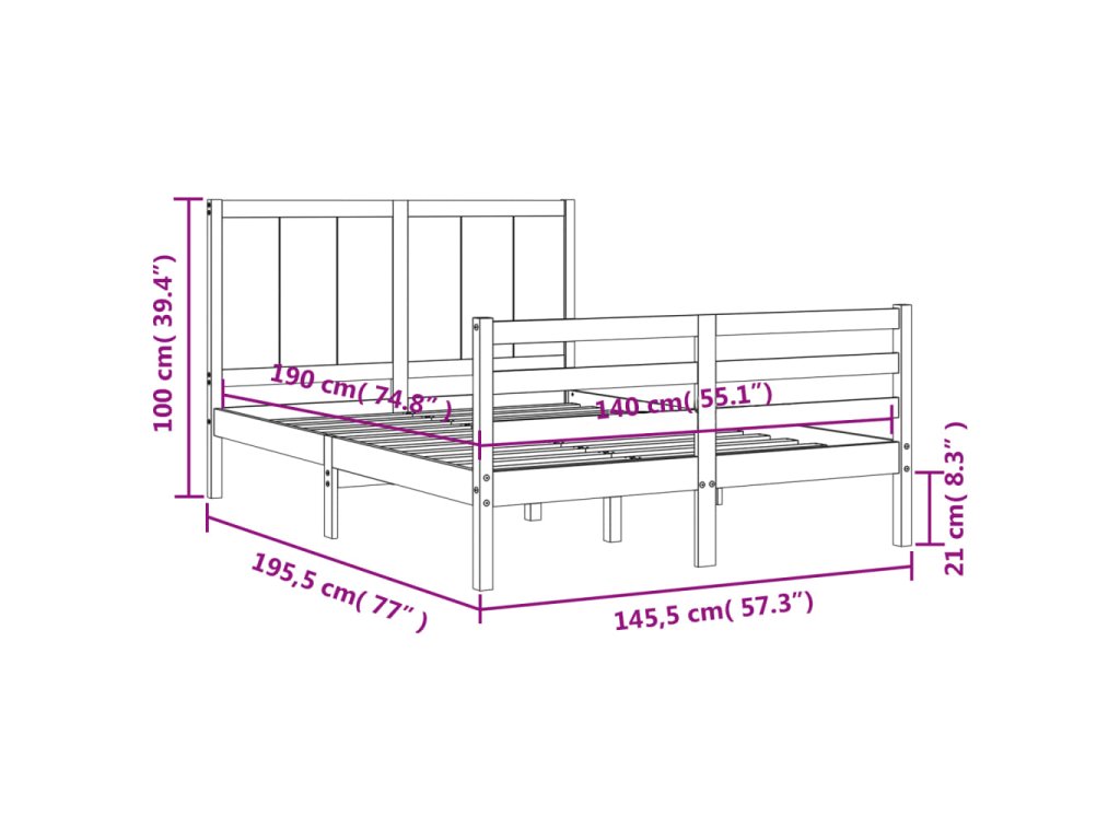 - Celkové rozměry postele: 195,5 x 145,5 x 100 cm (D x Š x V)