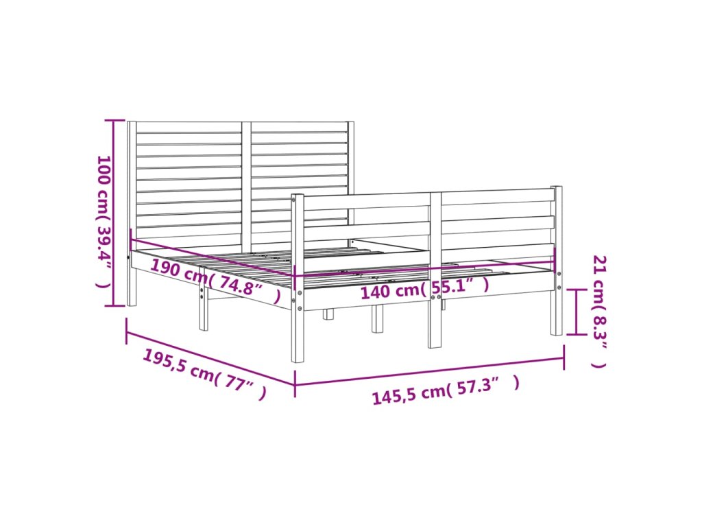 Rám postele s čelem 140 x 190 cm masivní dřevo 3195006