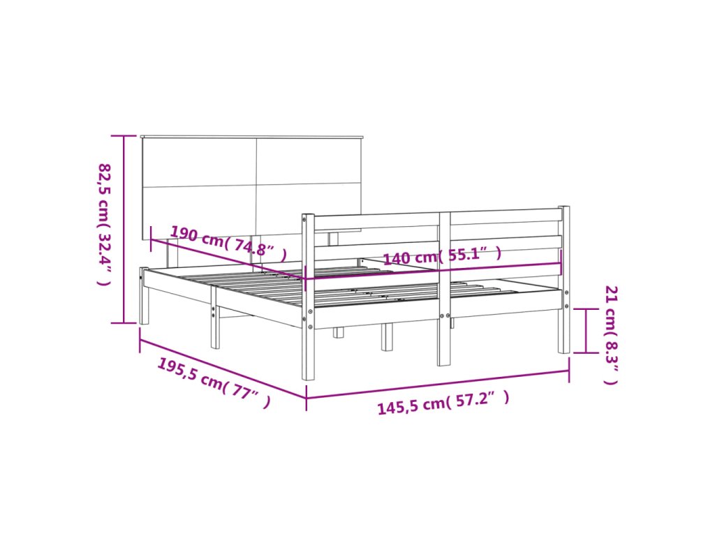 Rám postele s čelem 140 x 190 cm masivní dřevo 3195201