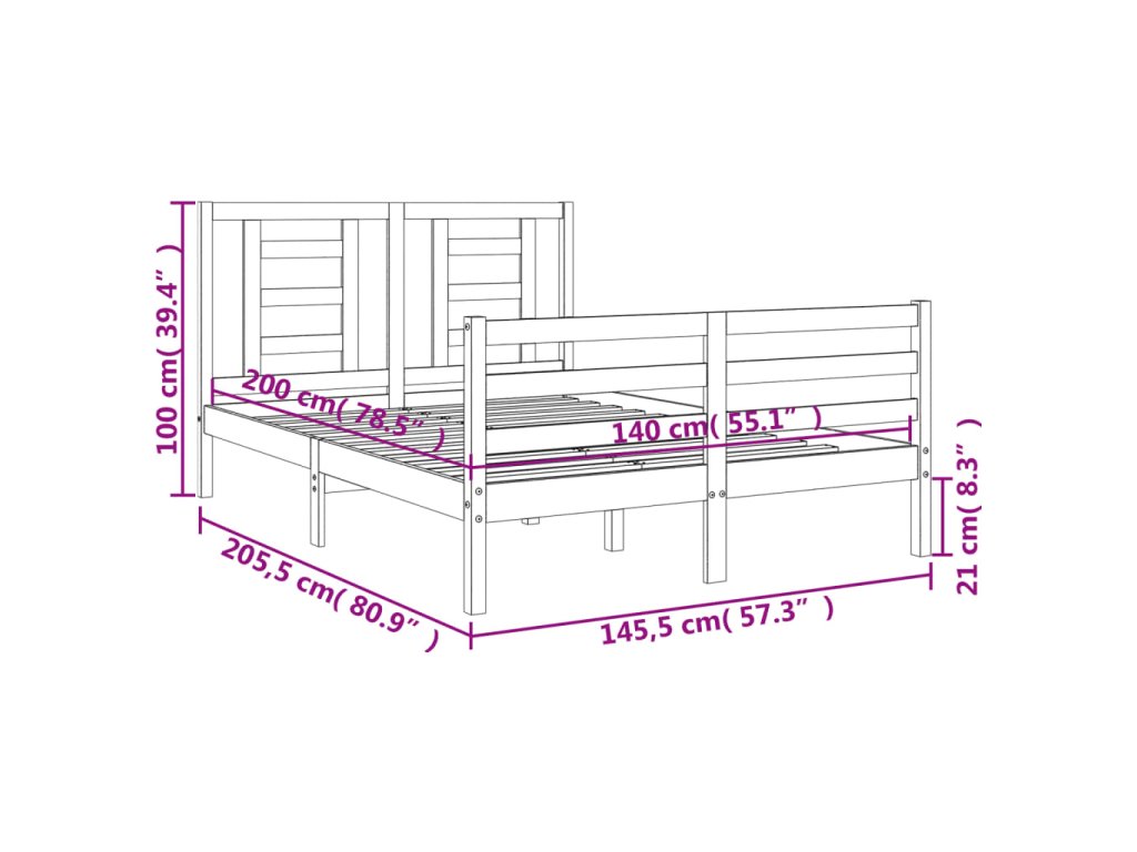 - Celkové rozměry postele: 205,5 x 145,5 x 100 cm (D x Š x V)