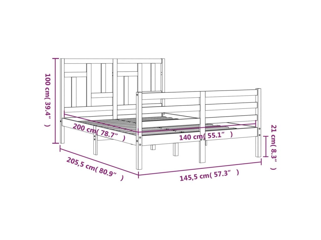 Rám postele s čelem 140 x 200 cm masivní dřevo 3194961
