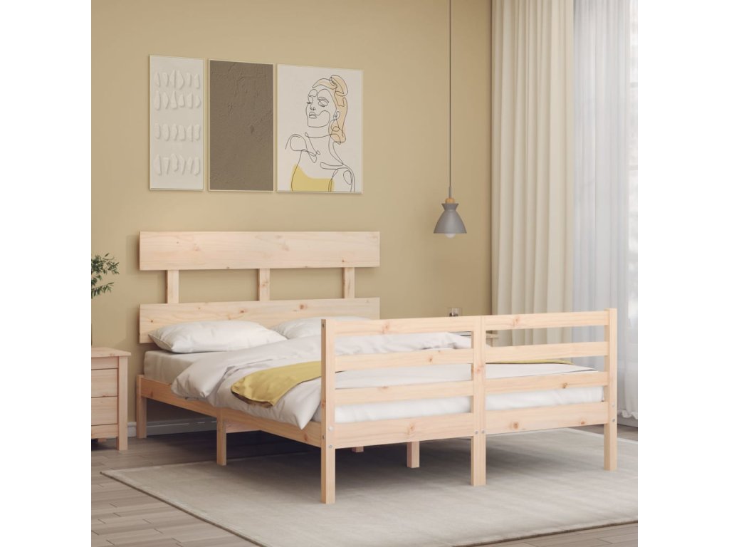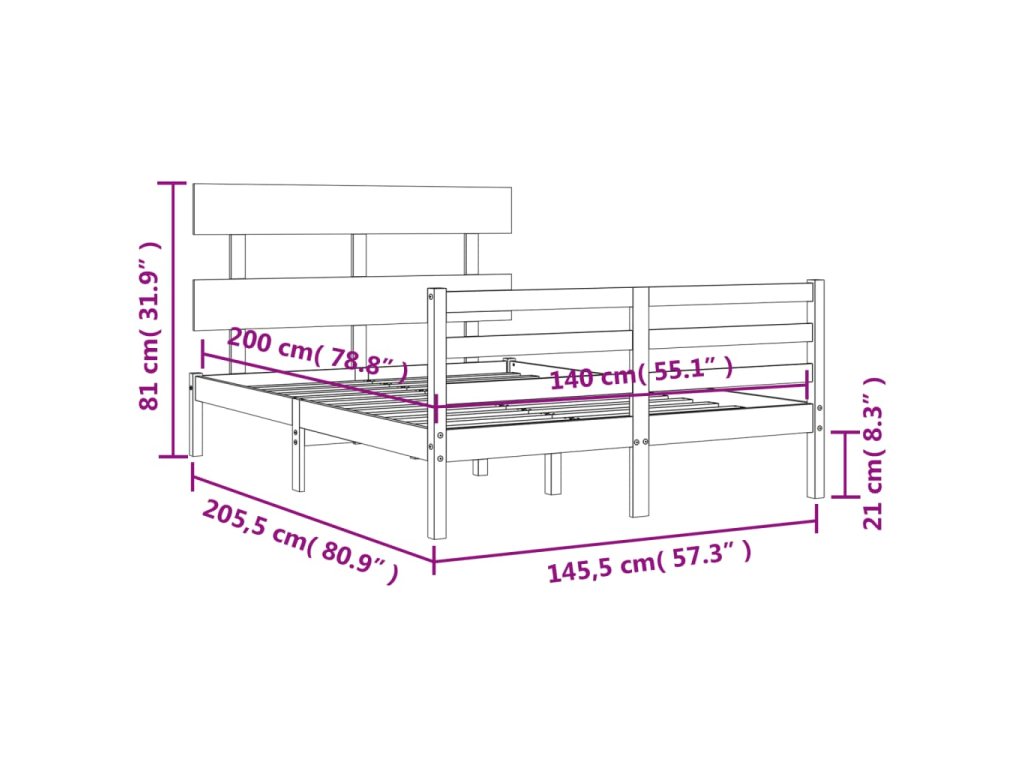 Rám postele s čelem 140 x 200 cm masivní dřevo 3195091