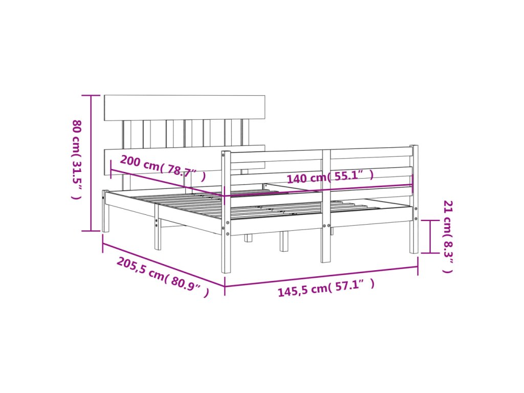 - Celkové rozměry postele: 205,5 x 145,5 x 81 cm (D x Š x V)
