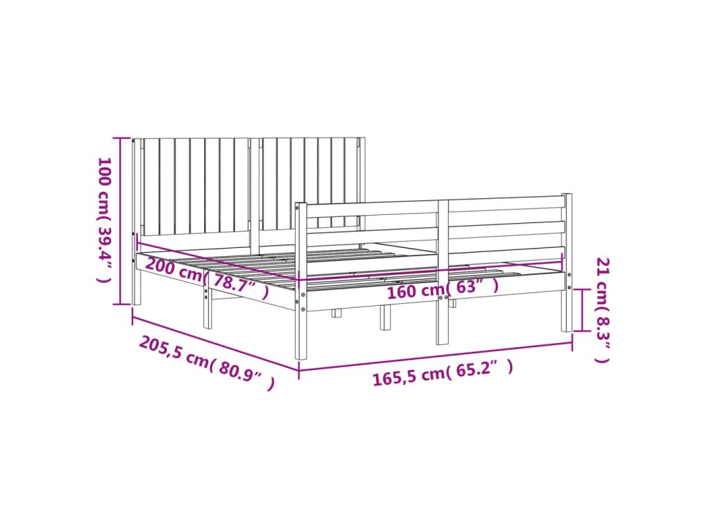 - Celkové rozměry postele: 205,5 x 165,5 x 100 cm (D x Š x V)
