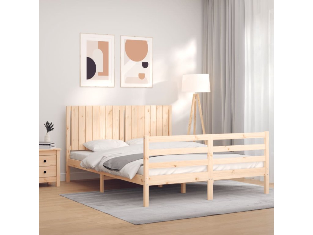 Rám postele s čelem 160 x 200 cm masivní dřevo 3194776