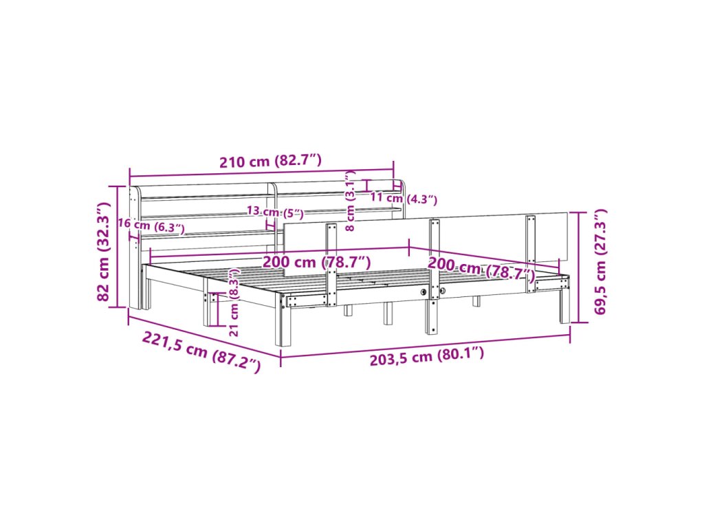 Rám postele s čelem 200 x 200 cm masivní borové dřevo 3306835