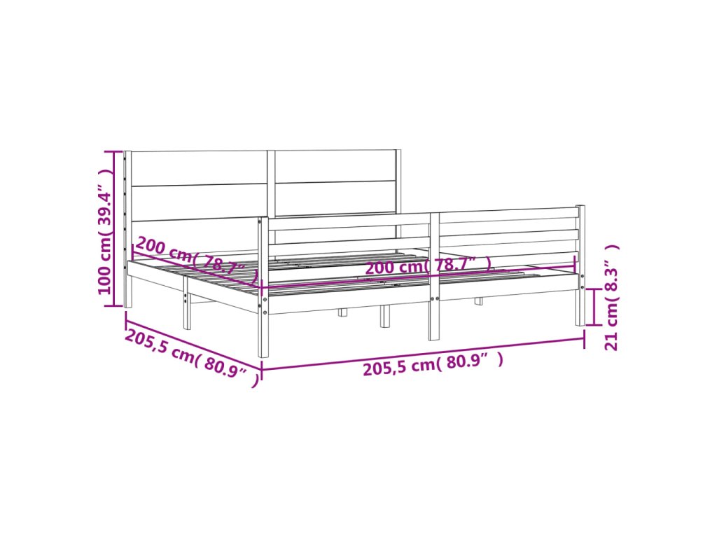 Rám postele s čelem 200 x 200 cm masivní dřevo 3194656