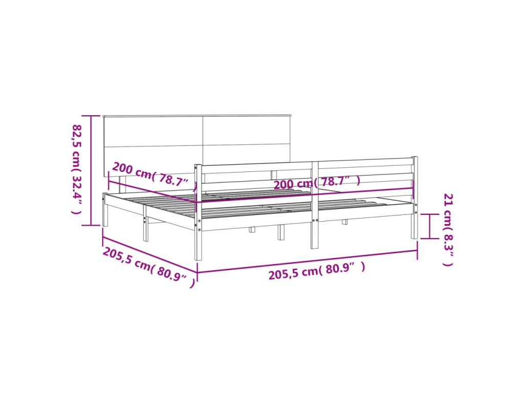 Rám postele s čelem 200 x 200 cm masivní dřevo 3195241