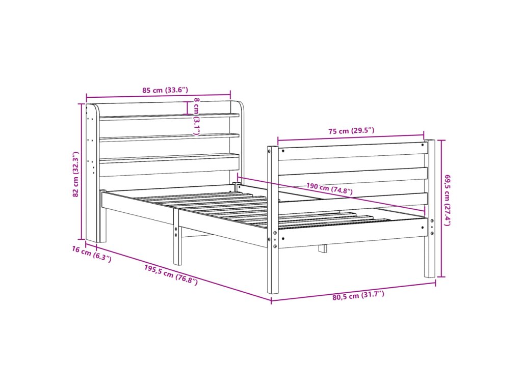 Rám postele s čelem 75 x 190 cm masivní borovice 3306629