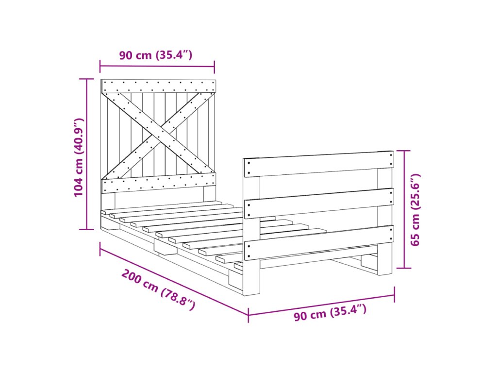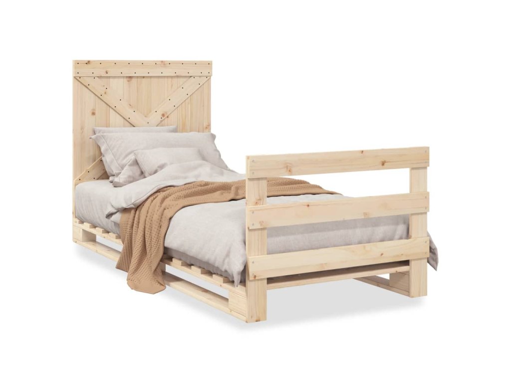 Rám postele s čelem 90 x 200 cm masivní borové dřevo 3281574