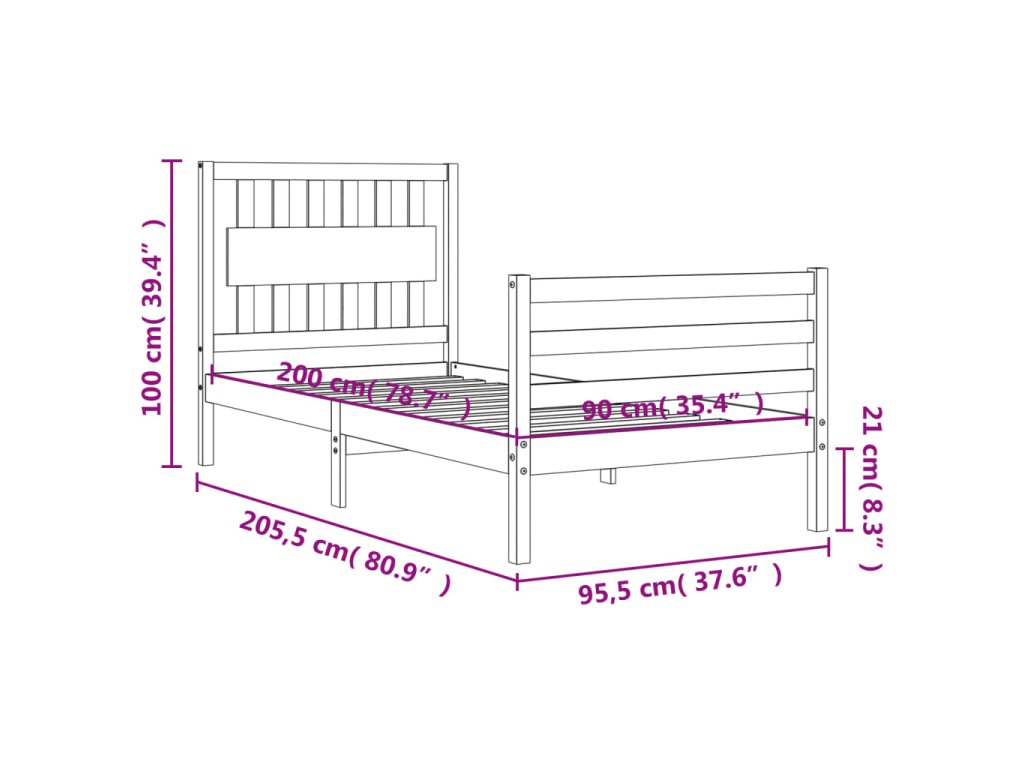 Rám postele s čelem 90 x 200 cm masivní dřevo 3194296