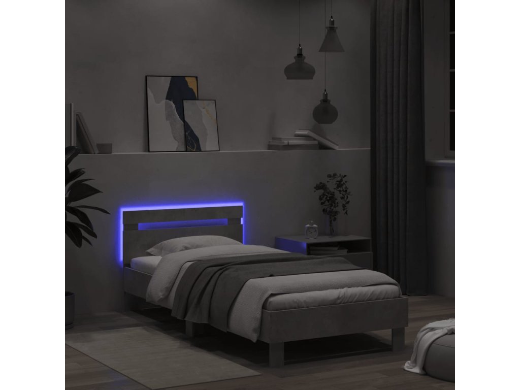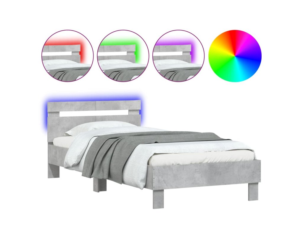 Rám postele s čelem a LED osvětlením betonově šedý 100 x 200 cm 838711