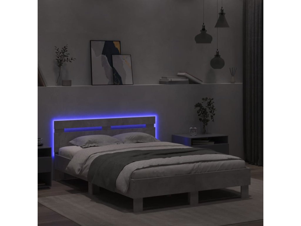 Rám postele s čelem a LED osvětlením betonově šedý 120 x 200 cm 3207556