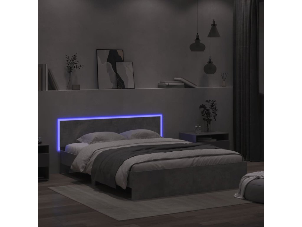 Rám postele s čelem a LED osvětlením betonově šedý 160 x 200 cm 3207598