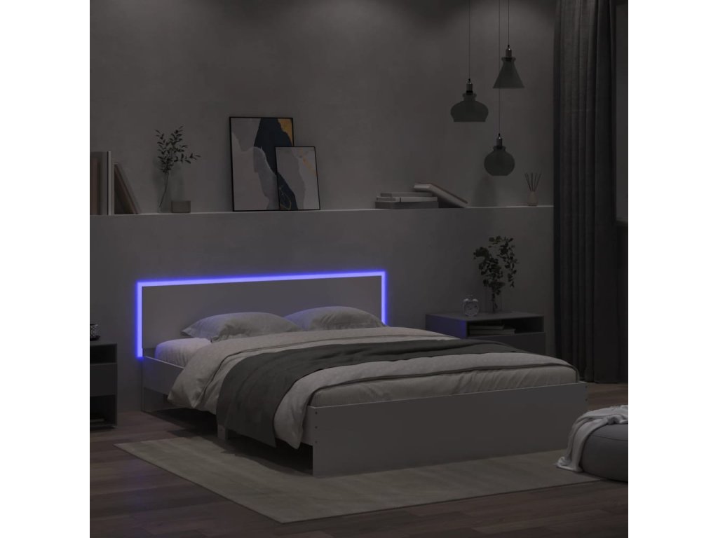 Rám postele s čelem a LED osvětlením bílý 150 x 200 cm 3207602