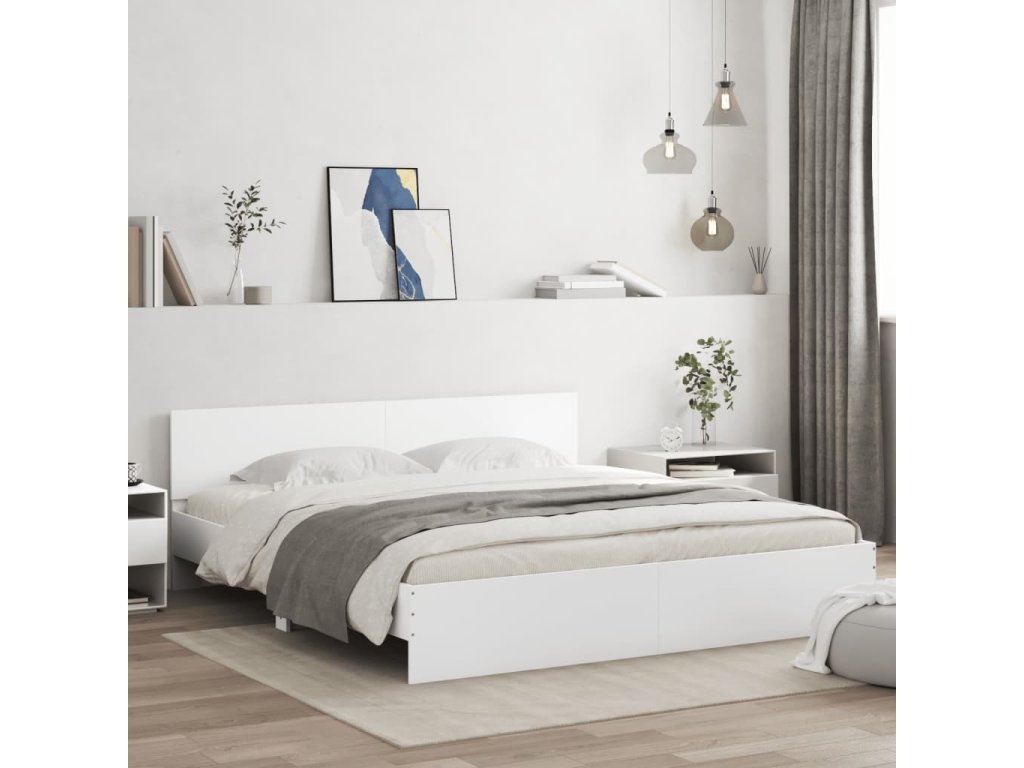 Rám postele s čelem a LED osvětlením bílý 200 x 200 cm 3207581