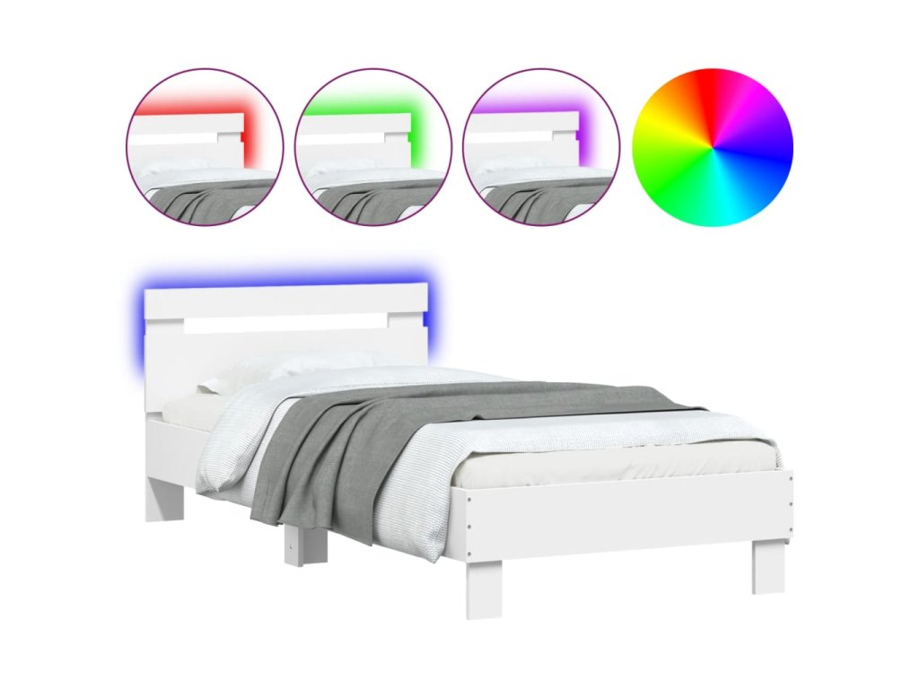 Rám postele s čelem a LED osvětlením bílý 90 x 200 cm 838715