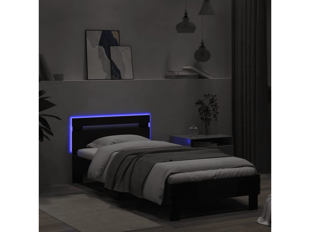 Rám postele s čelem a LED osvětlením černý 90 x 200 cm 838716