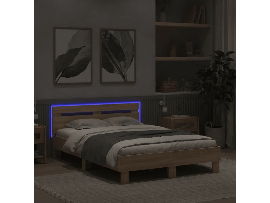 Rám postele s čelem a LED osvětlením dub sonoma 120 x 190 cm 3207576