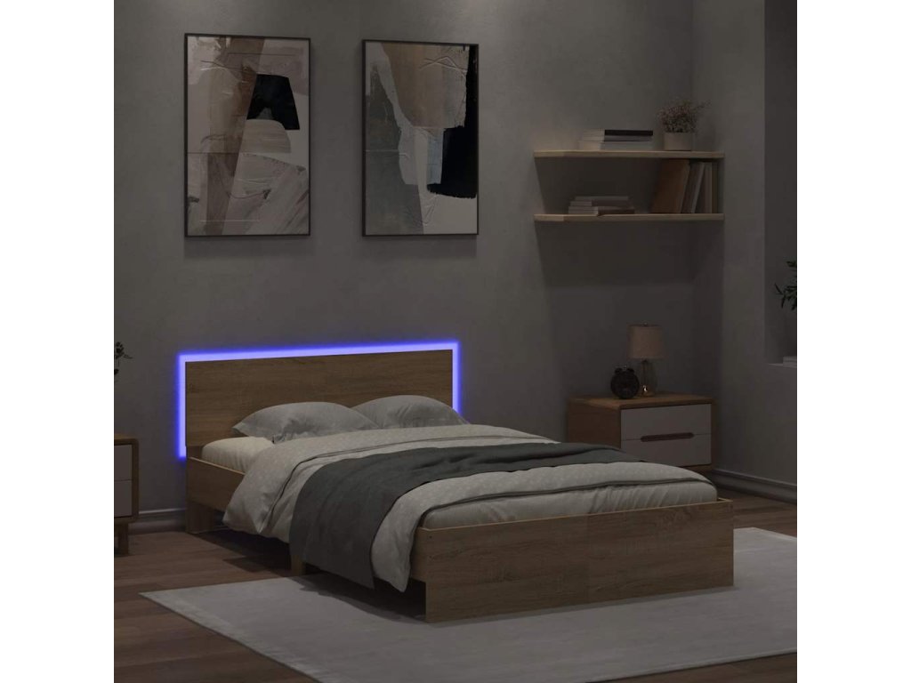 Rám postele s čelem a LED osvětlením dub sonoma 140 x 190 cm 3207625