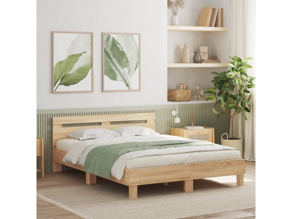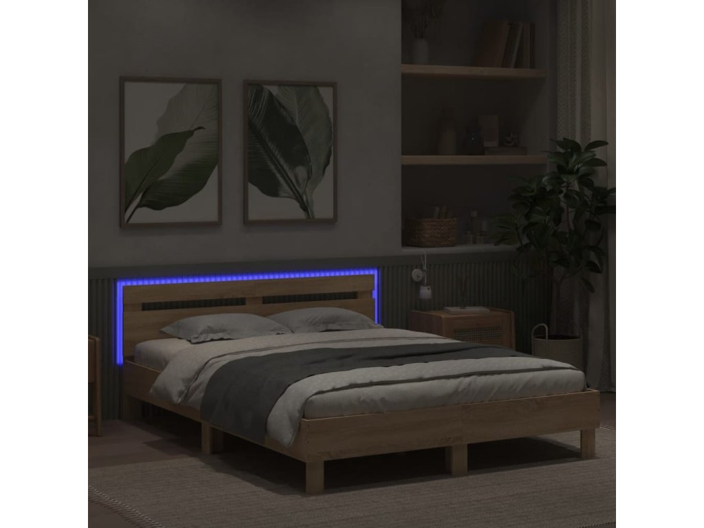 Rám postele s čelem a LED osvětlením dub sonoma 140 x 200 cm 3207548
