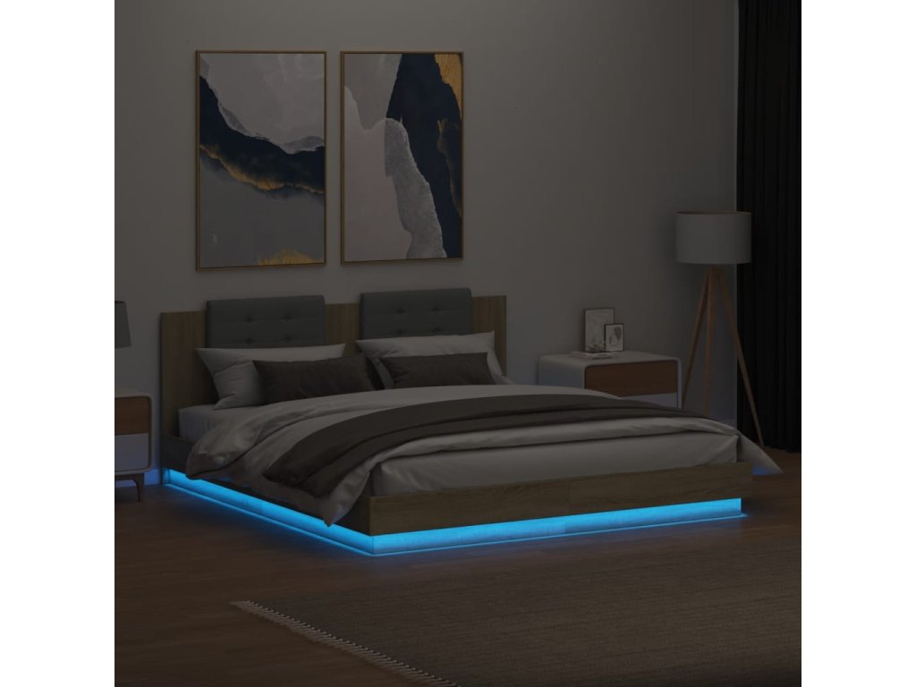 Rám postele s čelem a LED osvětlením dub sonoma 180x200 cm 3209991
