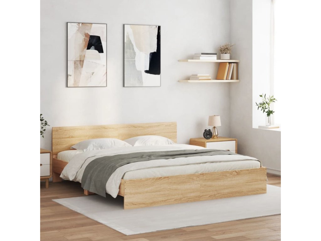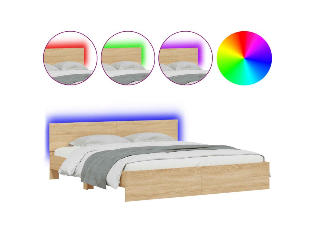 Rám postele s čelem a LED osvětlením dub sonoma 200 x 200 cm 3207583