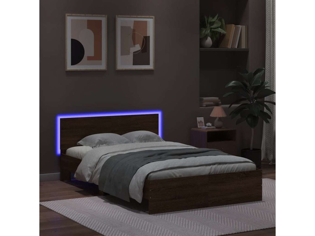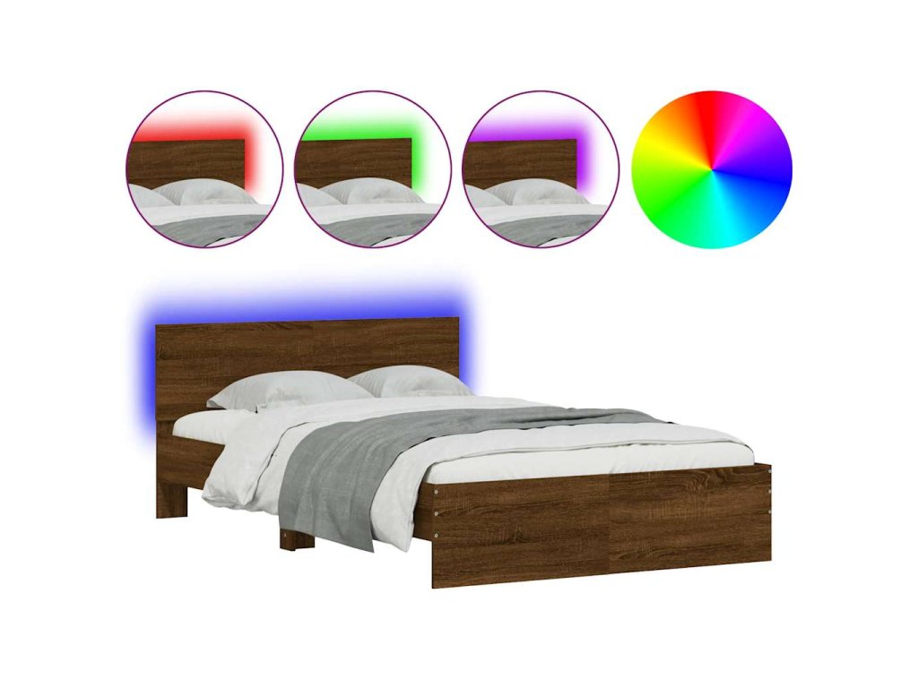 Rám postele s čelem a LED osvětlením hnědý dub 140 x 190 cm 3207629