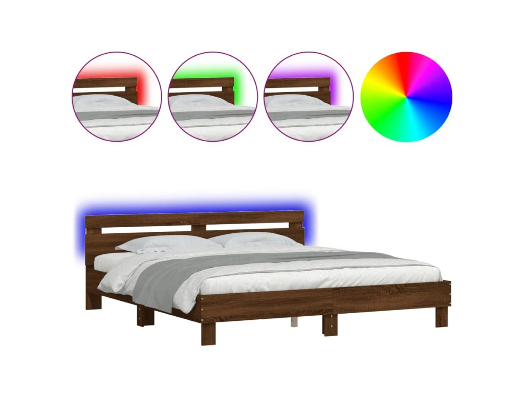 Rám postele s čelem a LED osvětlením hnědý dub 180 x 200 cm 3207531
