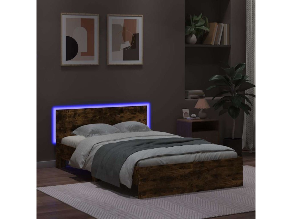 Rám postele s čelem a LED osvětlením kouřový dub 120 x 190 cm 3207641
