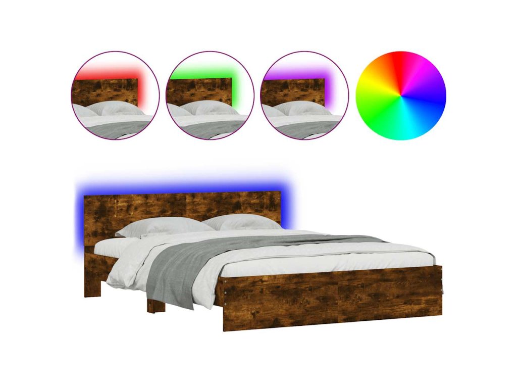 Rám postele s čelem a LED osvětlením kouřový dub 150 x 200 cm 3207606