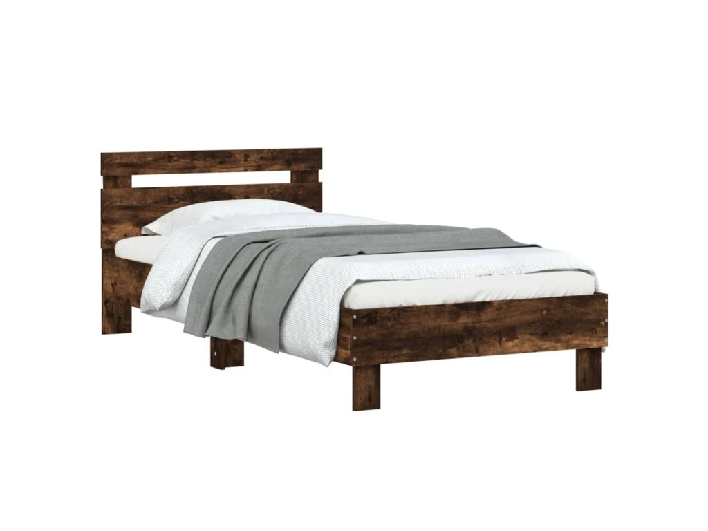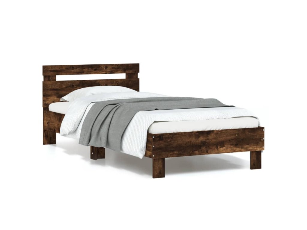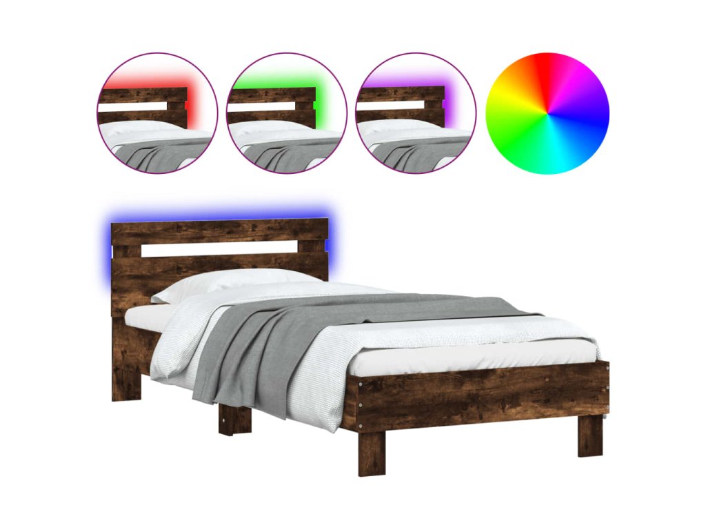 Rám postele s čelem a LED osvětlením kouřový dub 90 x 190 cm 838747