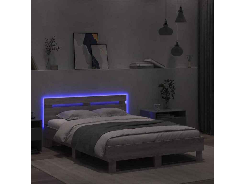 Rám postele s čelem a LED osvětlením šedý sonoma 120 x 190 cm 3207579
