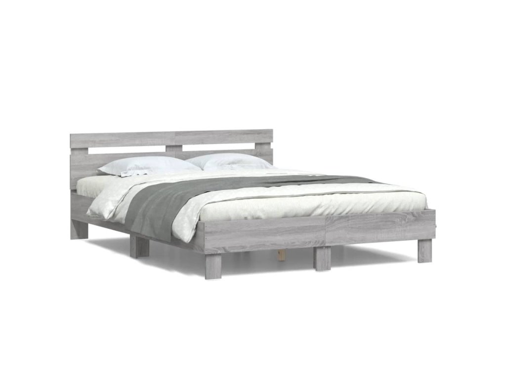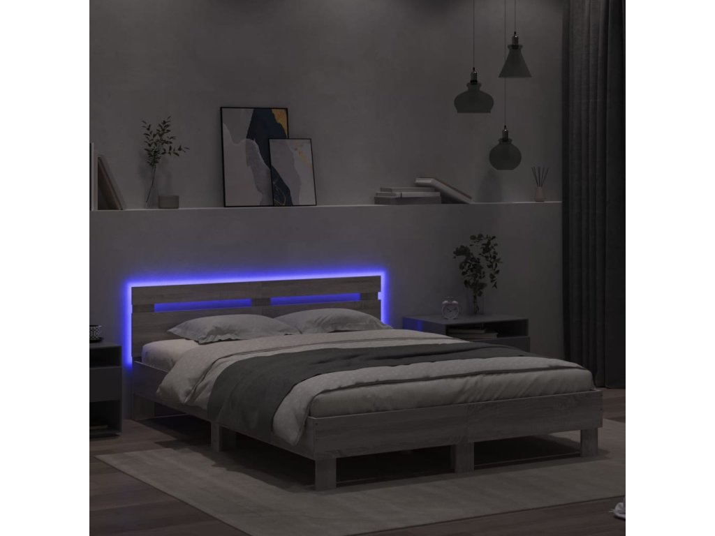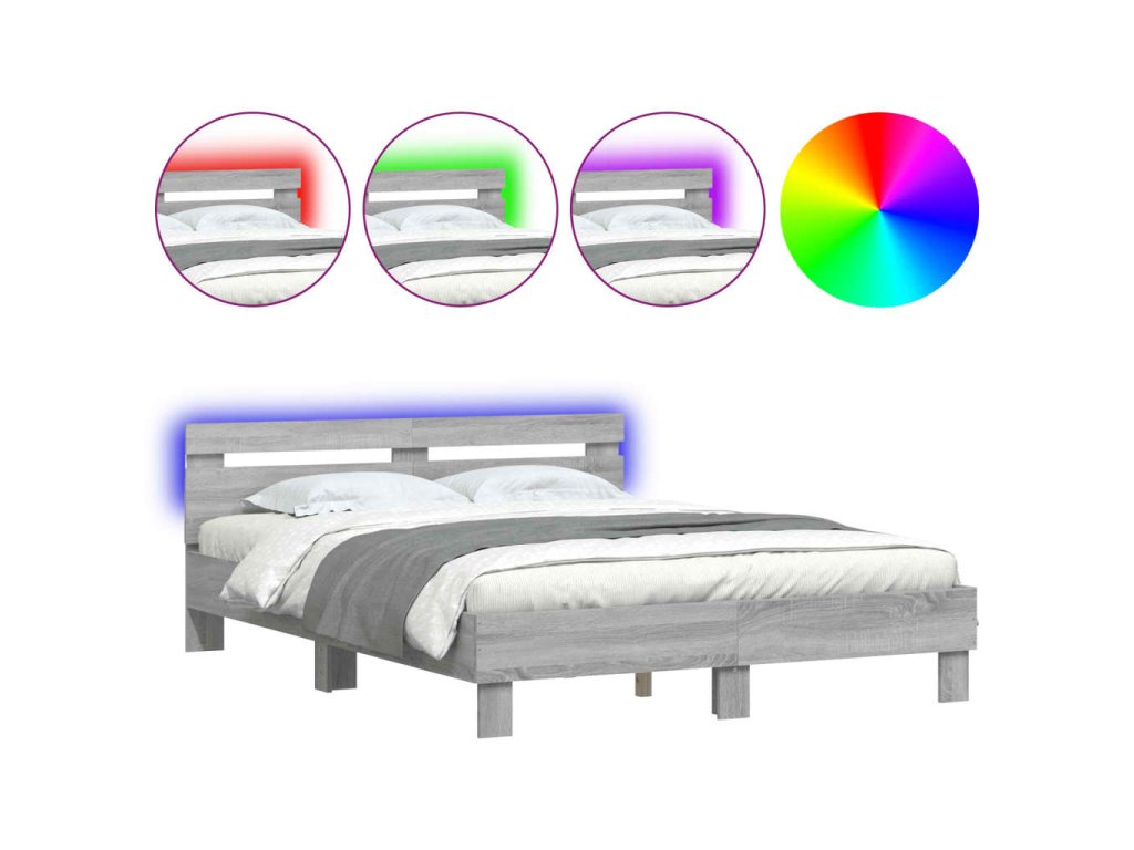 Rám postele s čelem a LED osvětlením šedý sonoma 150 x 200 cm 3207544