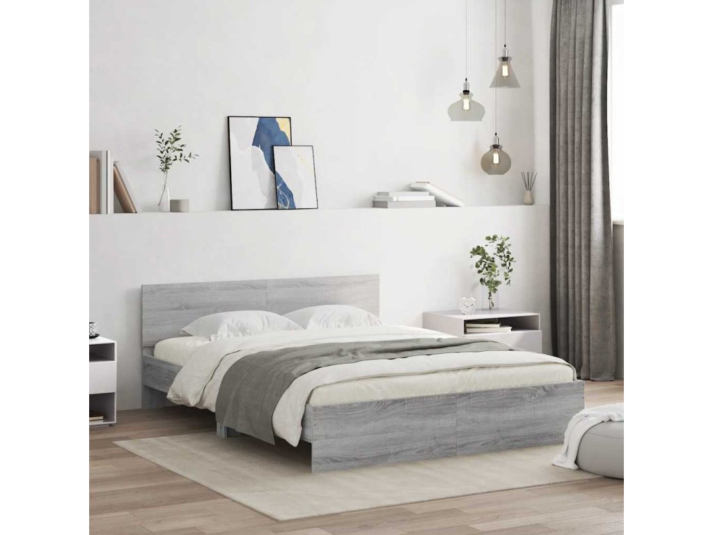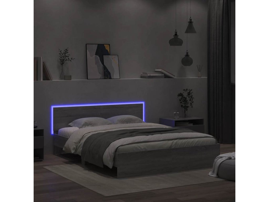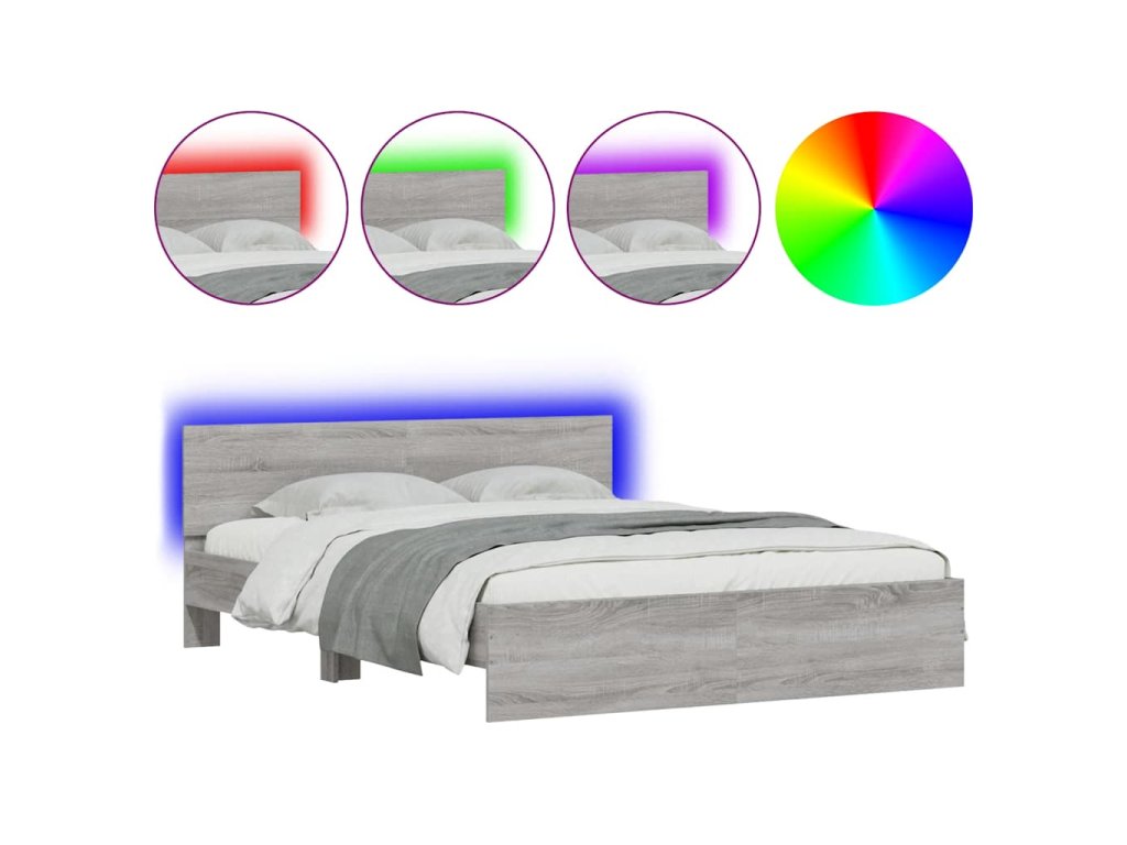Rám postele s čelem a LED osvětlením šedý sonoma 150 x 200 cm 3207607