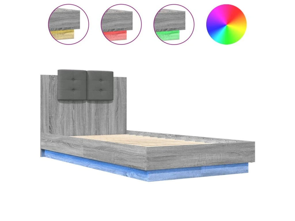 Rám postele s čelem a LED osvětlením šedý sonoma 75 x 190 cm 3210071