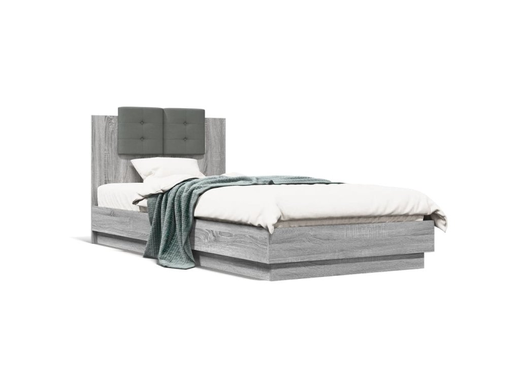 Rám postele s čelem a LED osvětlením šedý sonoma 90 x 200 cm 3210036
