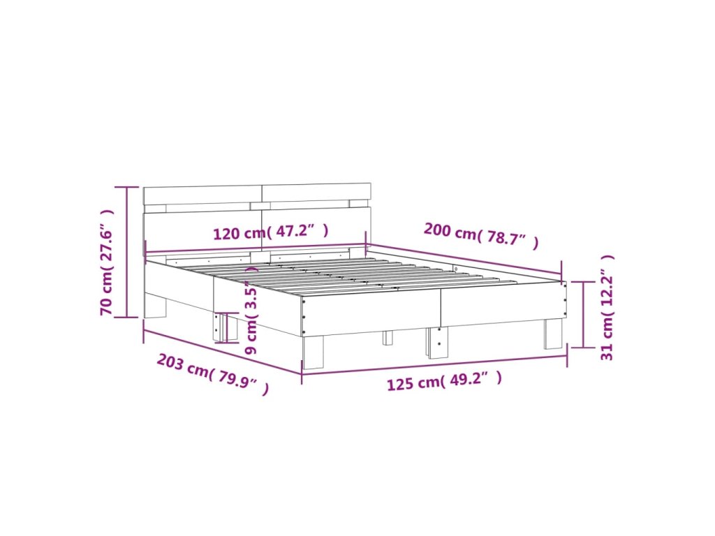 Rám postele s čelem betonově šedý 120 x 200 cm kompozitní dřevo 3207430