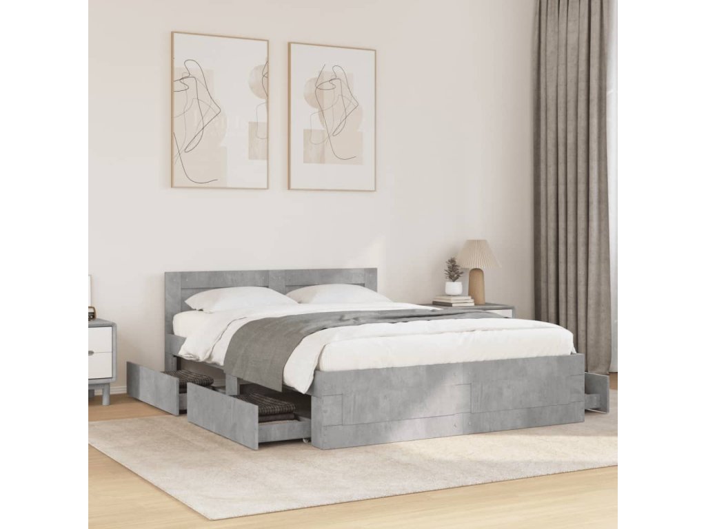 Rám postele s čelem betonově šedý 140 x 200 cm kompozitní dřevo 3295565