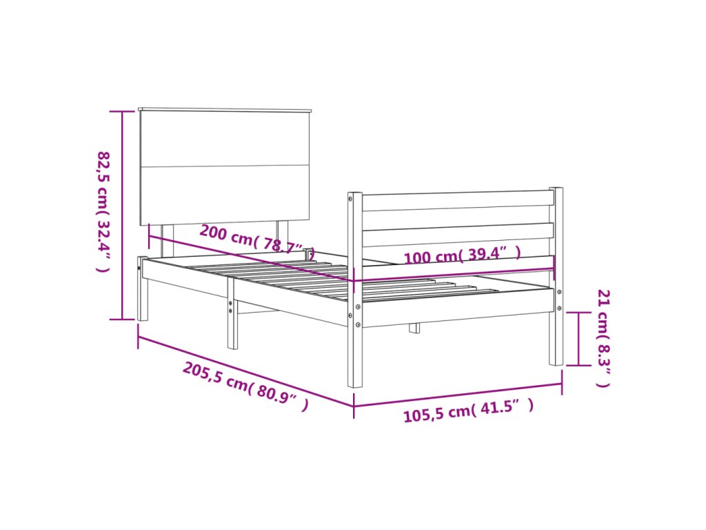 - Celkové rozměry postele: 205,5 x 105,5 x 82,5 cm (D x Š x V)