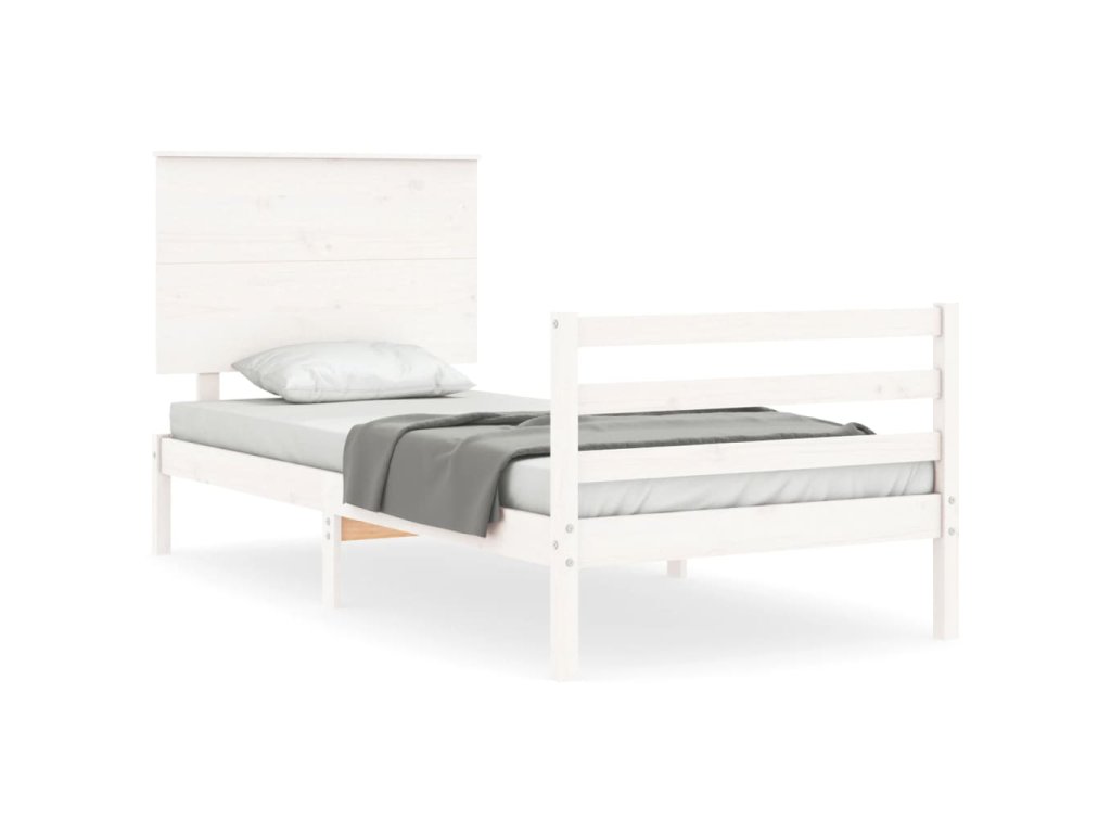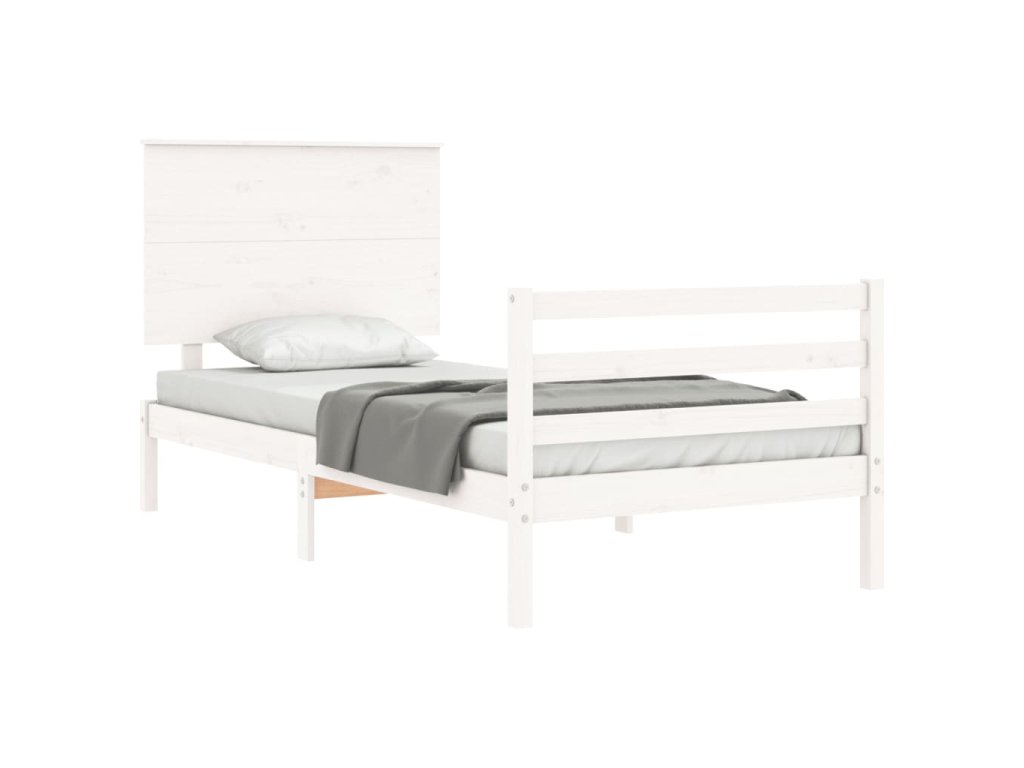 Rám postele s čelem bílý 100 x 200 cm masivní dřevo 3195212