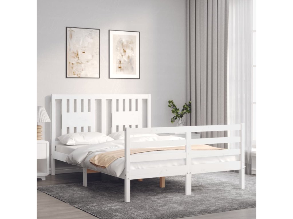 Rám postele s čelem bílý 120 x 200 cm masivní dřevo 3194567