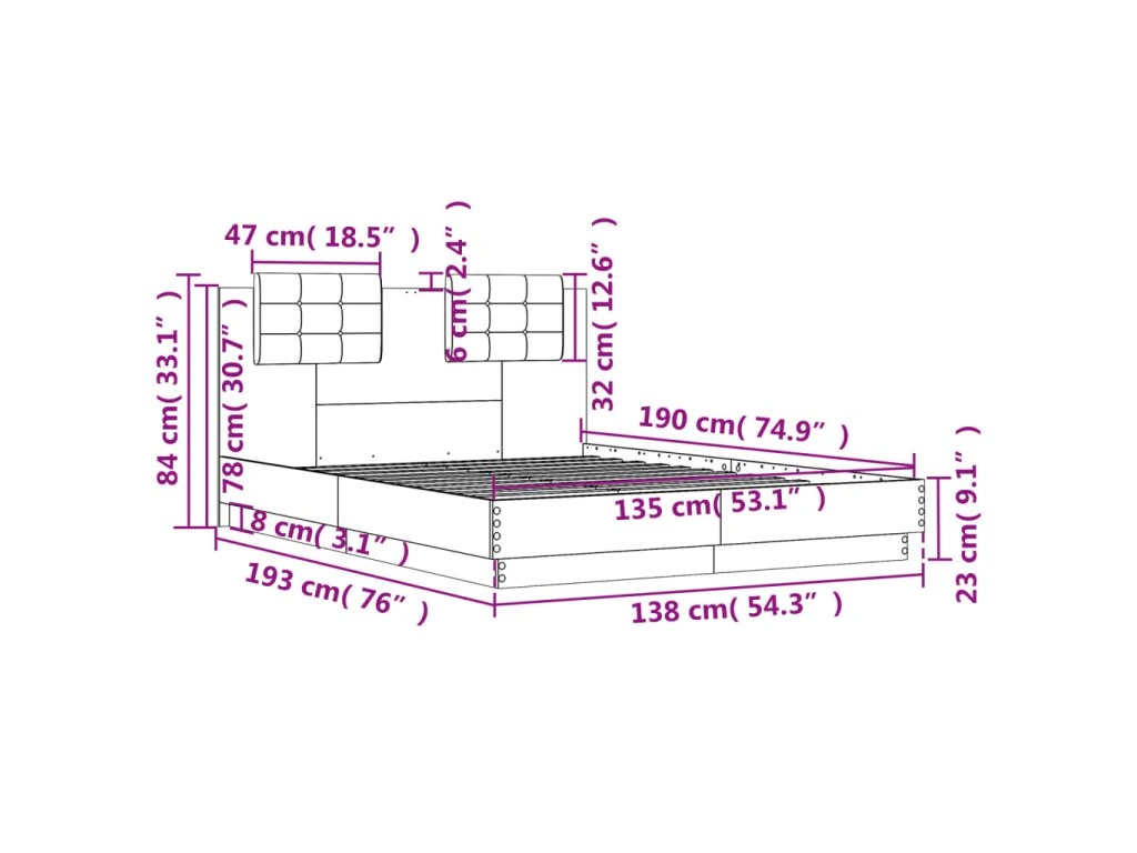 - Vhodné rozměry matrace: 135 x 190 cm (Š x D) (matrace není součástí balení)
