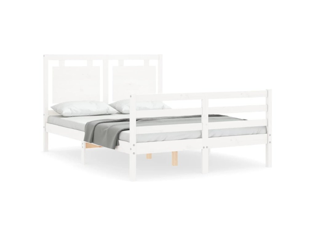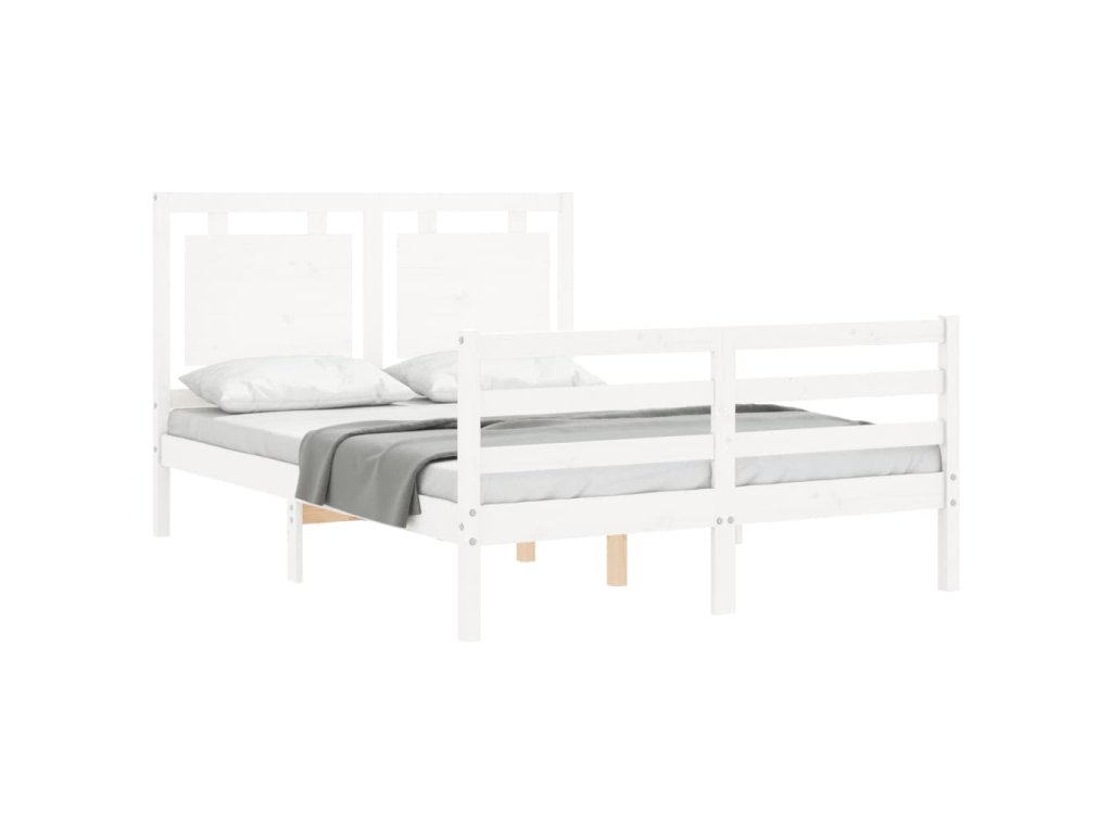Rám postele s čelem bílý 140 x 190 cm masivní dřevo 3194032