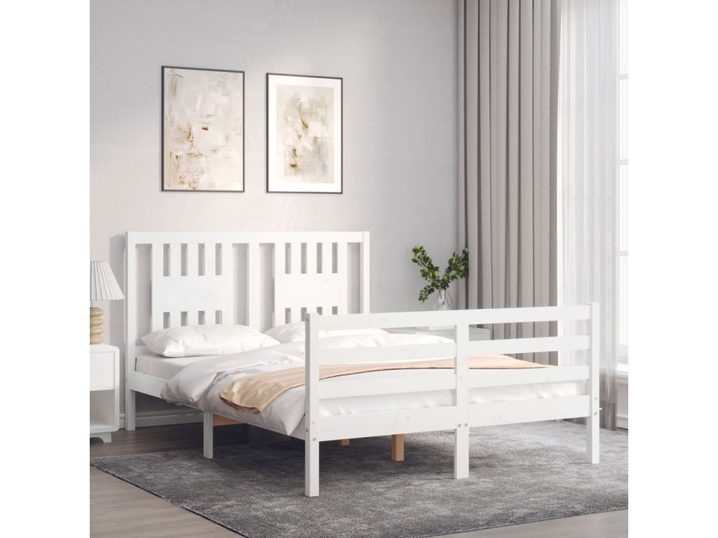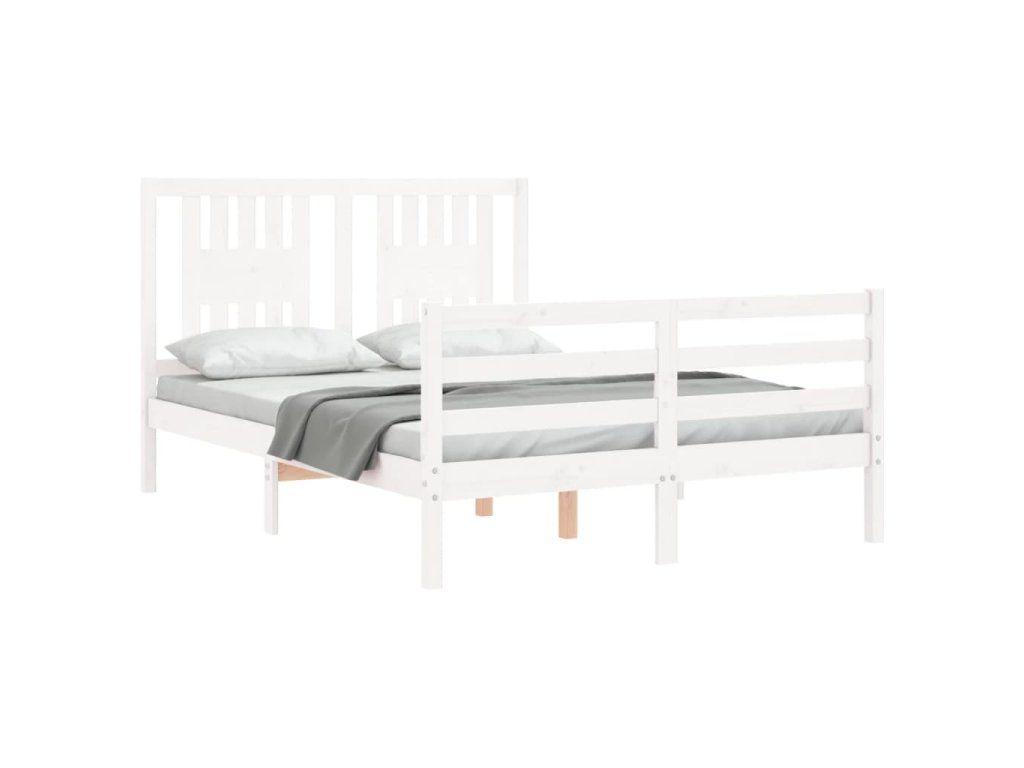 Rám postele s čelem bílý 140 x 190 cm masivní dřevo 3194552