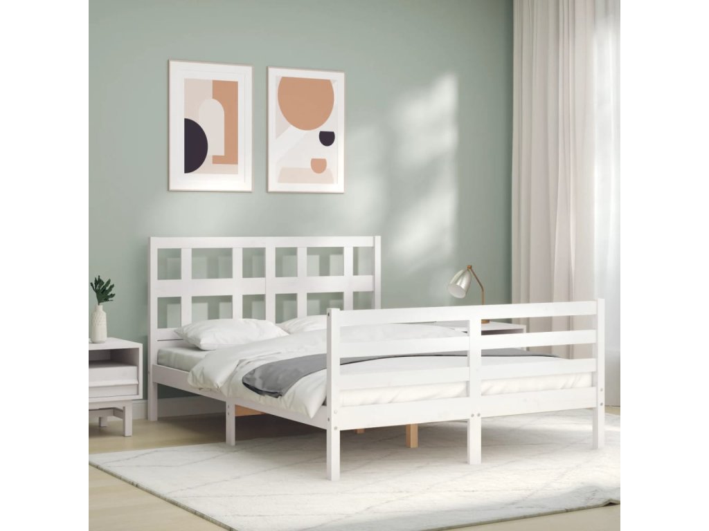 Rám postele s čelem bílý 140 x 190 cm masivní dřevo 3194812